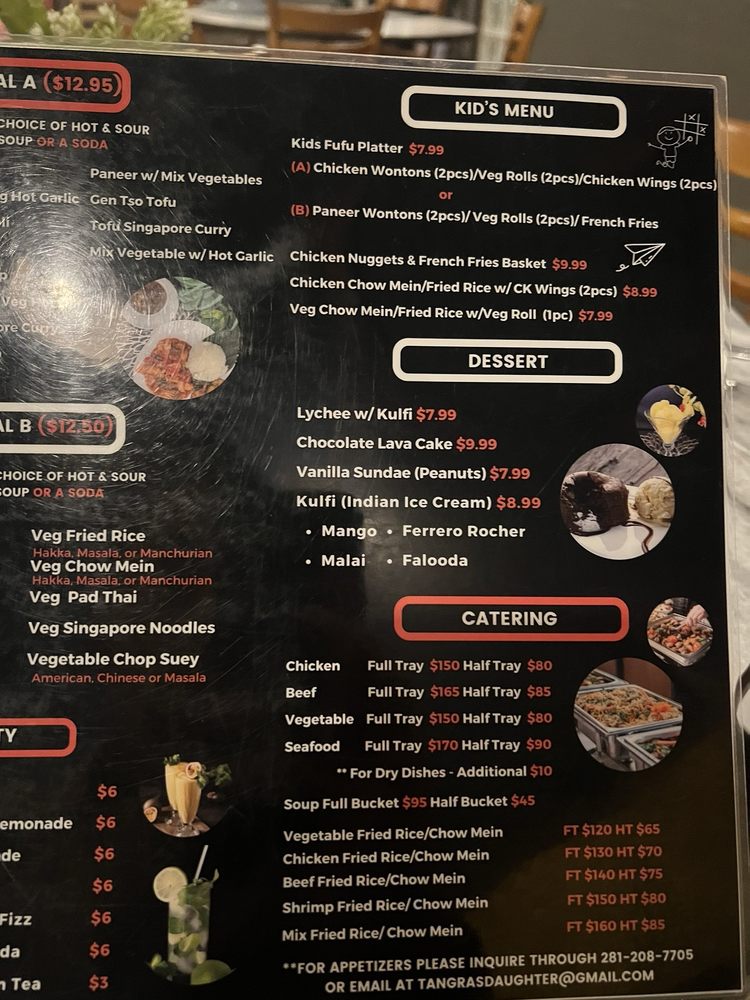 Customer feedback highlights a vibrant atmosphere and flavorful dishes, with the Chicken Lollypops and Chili Beef receiving particular praise. Though some diners noted a desire for larger serving sizes, the freshness and bold spices present a culinary experience that is undeniably worth savoring. Visit Tangra's Daughter for an unforgettable taste journey!