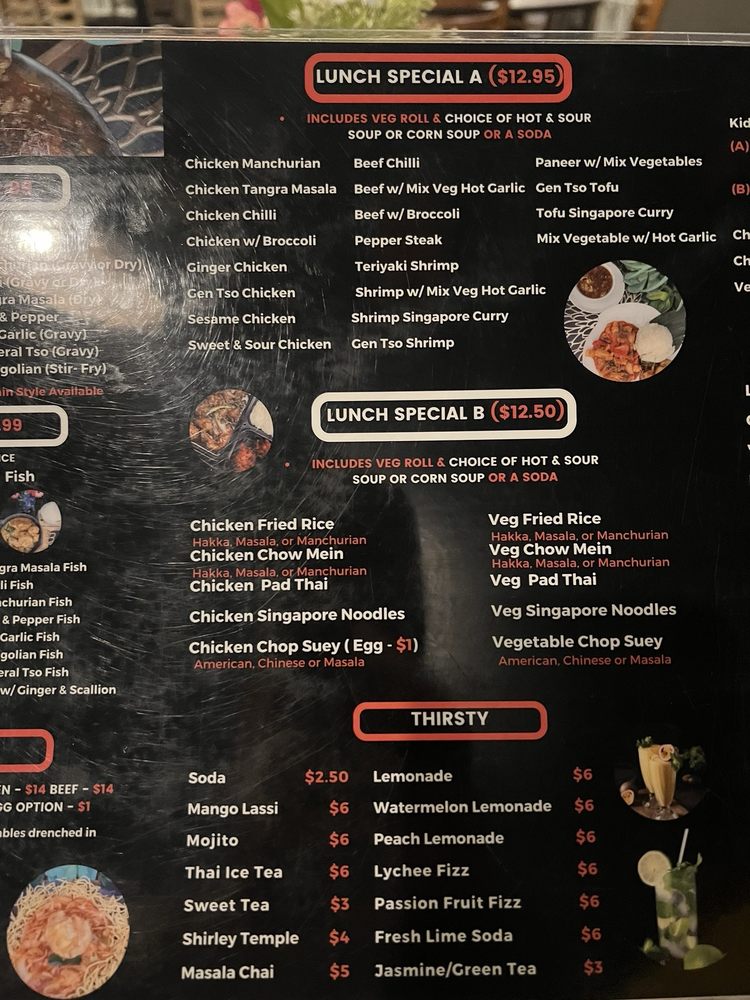 - Main Dishes: Don’t miss the Manchurian Fried Rice, perfectly seasoned and customizable with a choice of proteins.